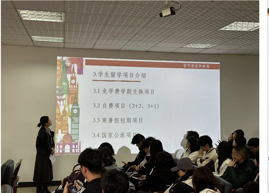 The lecture commenced with the significance of studying abroad, provided a comprehensive overview of the university's internationalization efforts, delved into the university's overseas study programs, and concluded with guidance on how students can prepare for studying abroad.