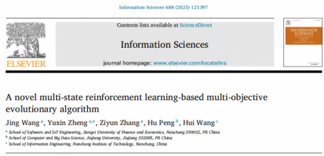 成果三:强化学习赋能进化算法智能化。团队的最新成果《A novel multi-state reinforcement learning-based multi-objective evolutionary algorithm》于2025年发表于《Information Sciences》。该研究开创性地将多状态强化学习(MRL)框架融入多目标进化算法,提出了MRL-MOEA。该算法旨在攻克种群多样性与收敛性难以平衡的核心难题。实验证明,在DTLZ、WFG等标准测试集上,特别是在3至10目标的高维复杂问题中,MRL-MOEA的性能显著超越现有先进算法。这项研究不仅为求解复杂优化问题提供了高效智能的新途径,也成功验证了强化学习与进化算法融合的巨大潜力。