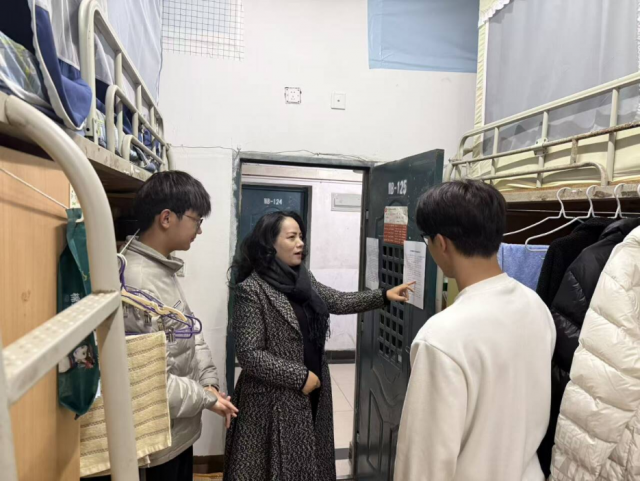 为切实保障校园宿舍安全,强化学生安全防范意识,做好离校期间宿舍安全管理工作,近日,皇冠体育博彩 党委书记季小刚,党委副书记匡琳带队,学工办主任钟英娥、团委书记吴小湖,学工办副主任梅文娟,专职辅导员龚晨晨、邹璐、王安亮陪同,深入宿舍开展以电线安全为重点,同步覆盖安全卫生情况的专项工作。