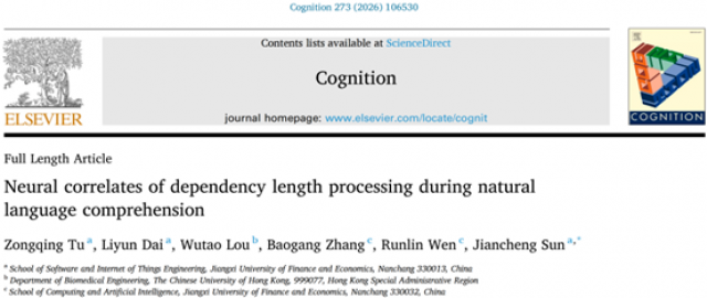 在自然语言理解与认知神经科学交叉领域取得新进展,相关成果《Neural correlates of dependency length processing during natural language comprehension》发表于认知科学领域重要国际期刊《Cognition》(学校A类刊物)。该论文第一作者为硕士生涂宗晴,香港中文大学娄武涛博士参与合作,皇冠体育博彩